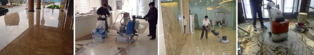 石材装饰工程中的一种安装或翻新工艺,对安装后完成的石材地面再进行整体表面处理,可有效地提高石材地面安装时的工艺要求,消除接缝高低差,保持石材亮丽平整等特点,还其石材华贵的天然本色。即在石材表面再进行的任何处理工程都可归纳到石材翻新中。