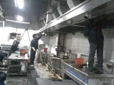 采用的主要方法是人员进入烟道内部进行清洗;对于外部竖形油烟管道采用人工拆卸加高压清洗机进行清洗。我公司拥有高压清洗机、高压蒸汽机等各种电动工具,其特点是:对于排烟口窄小,人工无法进入烟道或烟道本身复杂、狭窄、人工触及不到无法进行清洁但又存在着重大火灾隐患的地方,公司可利用专用设备及高效去油清洁剂进行清洗,不留死角,打消客户的疑虑和担心,消除一切潜在的火灾隐患。